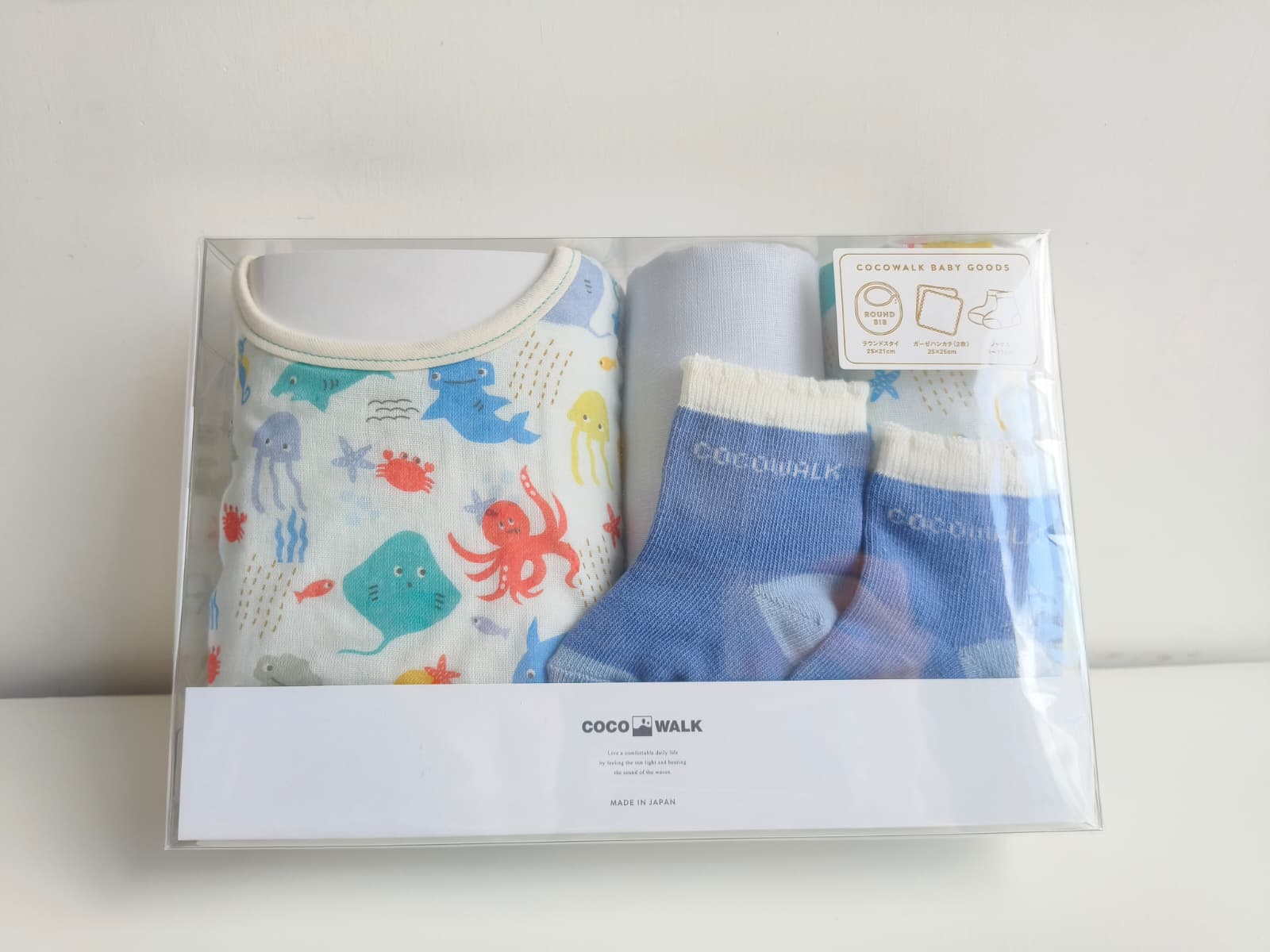 日本製 -cocowalk禮盒裝 呢set自用送禮都好啱👍🏻 全日本製 口水肩 x 1條 日本製紗巾 x 2條 襪仔 x 1對 Price $218
