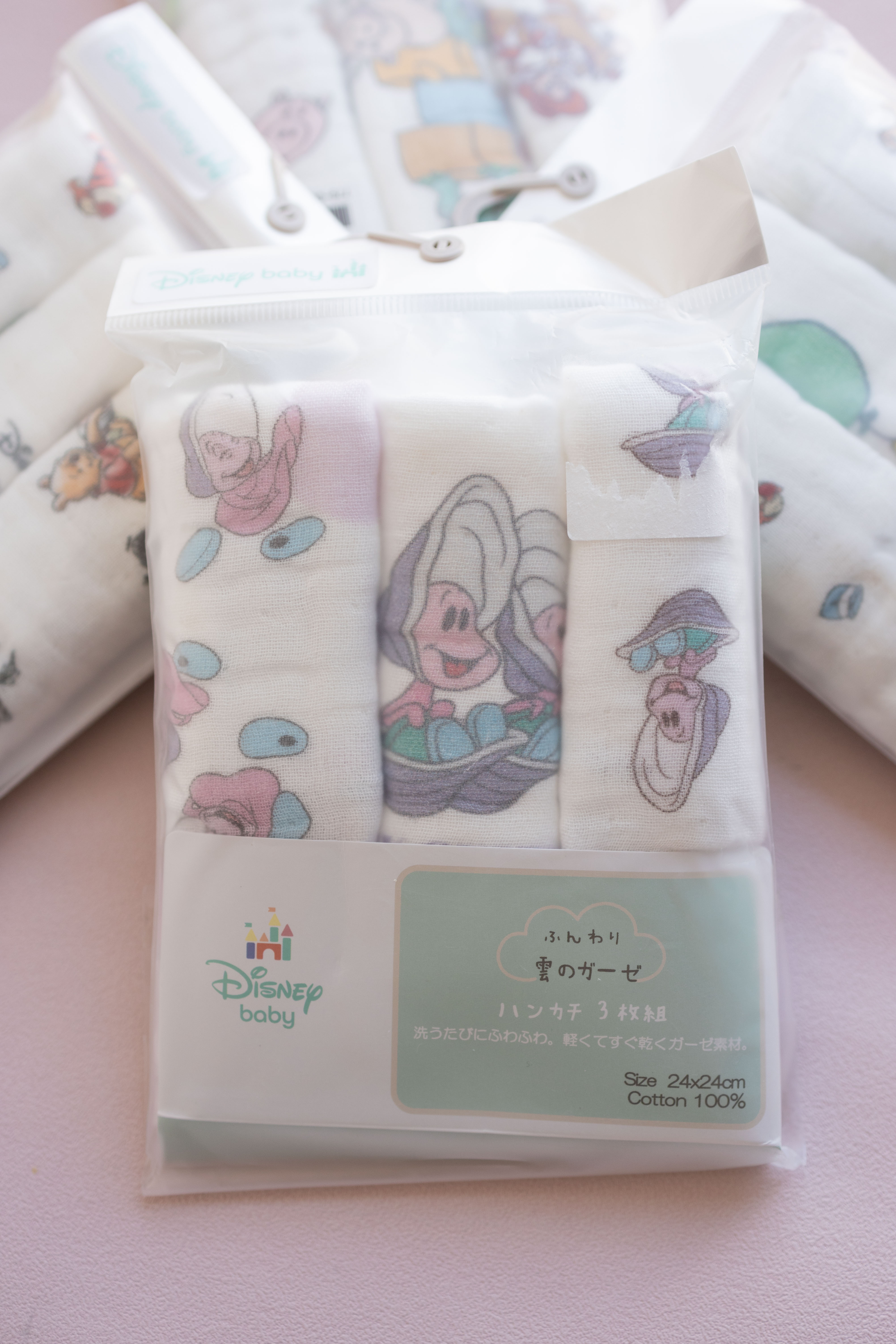 Disney Baby OYSTERS多重層紗紗巾 適合多口水嘅寶寶 又可以沖涼抹身用 一包三枚入 Size : 24cm x 24cm Price $78