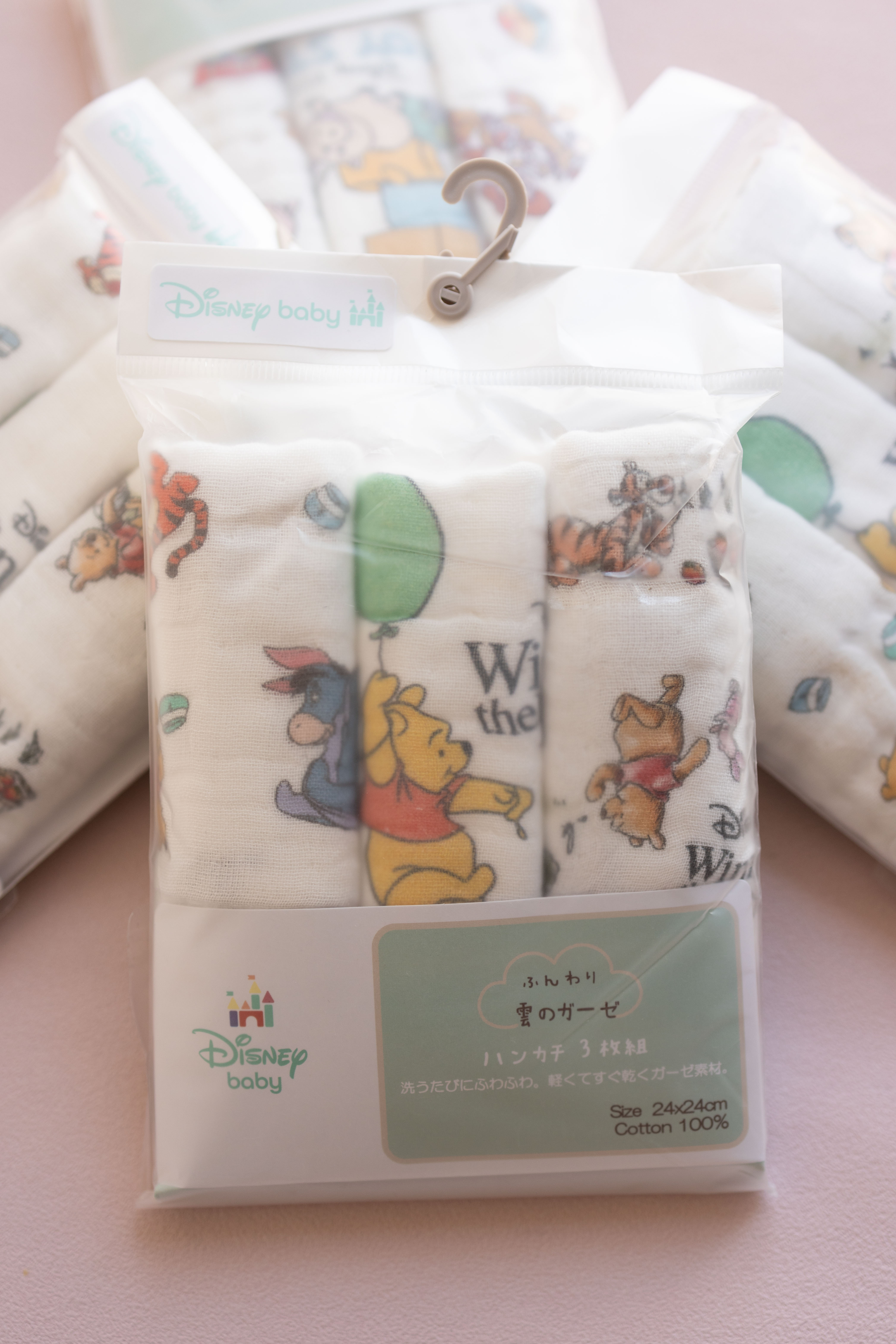 Disney Baby Winnie the Pooh多重層紗紗巾 適合多口水嘅寶寶 又可以沖涼抹身用 一包三枚入 Size : 24cm x 24cm Price $78